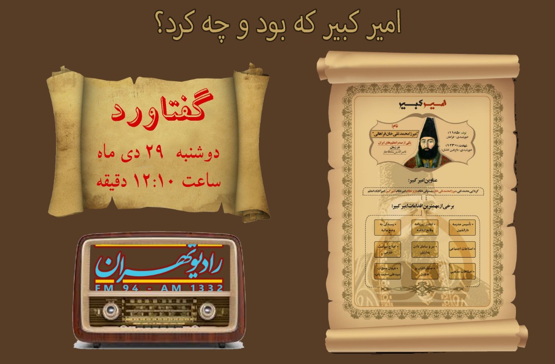 یکی از شخصیتهای جذاب سیاسی برای همه ایرانیان میرزا تقی خان فراهانی معروف به امیر کبیر است . در برنامه گفتاورد رادیو تهران درباره شخصیت امیر کبیر و علل ماندگاری او صحبت کردیم.