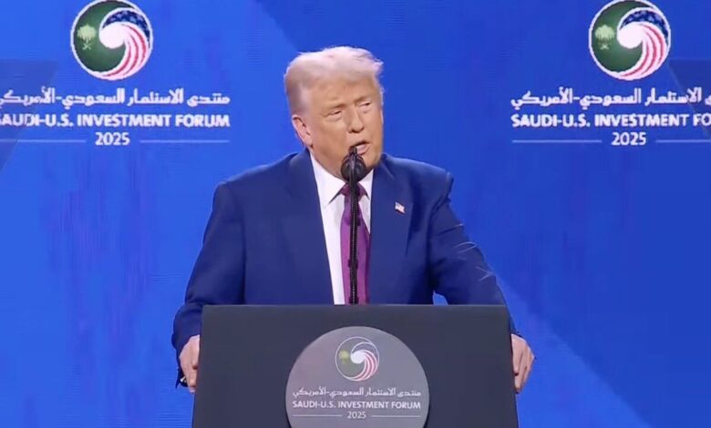 خطاب به رهبران و تجار عرب حاضردر این مجمع گفت: «درحالی که شما بیابانهای خشک را به زمینهای حاصلخیز تبدیل کردهاید، رهبران ایران مراتع سبز را به بیابانهای خشک تبدیل کردند.