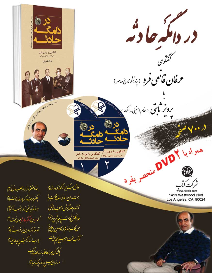 «در دامگه حادثه»، کتابی است که در آن عرفان قانعیفرد (محقق تاریخ معاصر) با پرویز ثابتی (مقام امنیتی مهم و مشهور دوران محمدرضا پهلوی) به گفتگویی مبسوط نشسته است و در آن کتاب به بررسی حوادث سالهای ۱۳۳۷ – ۱۳۵۷ پرداخته شده؛ این کتاب در ۶۸۰ صفحه، در قطع وزیری، در ایام سالروز انقلاب، در ۵۵۰۰ نسخه در اختیار علاقمندان در سراسر جهان، قرار میگیرد.